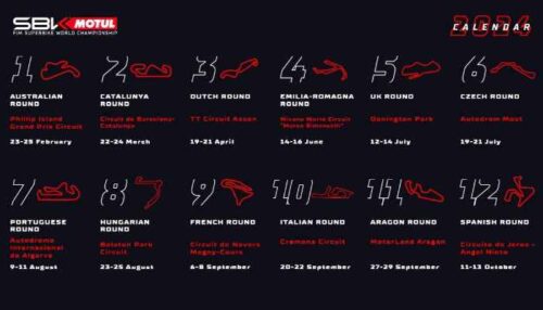 reporter-channel – Kalender 2024 balap motor bermesin 1000 cc World Superbike (WSBK) sudah dirilis Dorna Sports pada Oktober lalu, namun tidak ada jadwal di Sirkuit Mandalika, Lombok Tengah, Nusa Tengga Barata, Indonesia. Penyebab Sirkuit Mandalika dicoret dikabarkan karena besarnya hosting fee yang harus dibayar pemerintah.